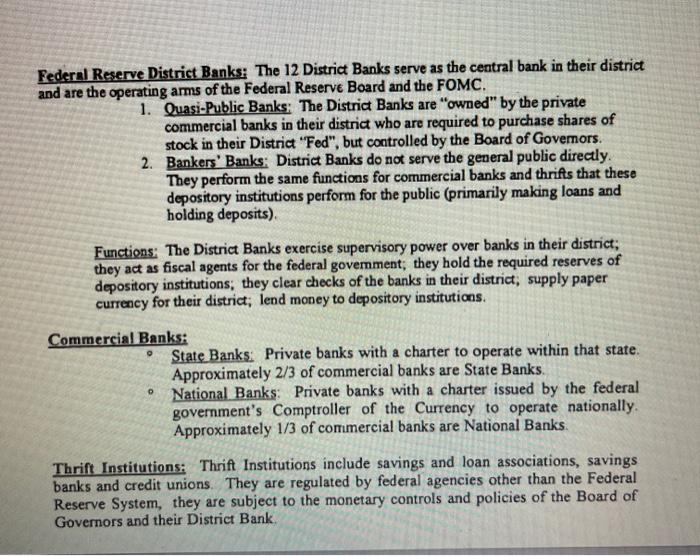 The 12 district banks are supported in fed banks are technically owned by member commercial banks.